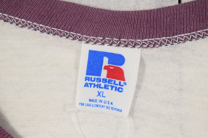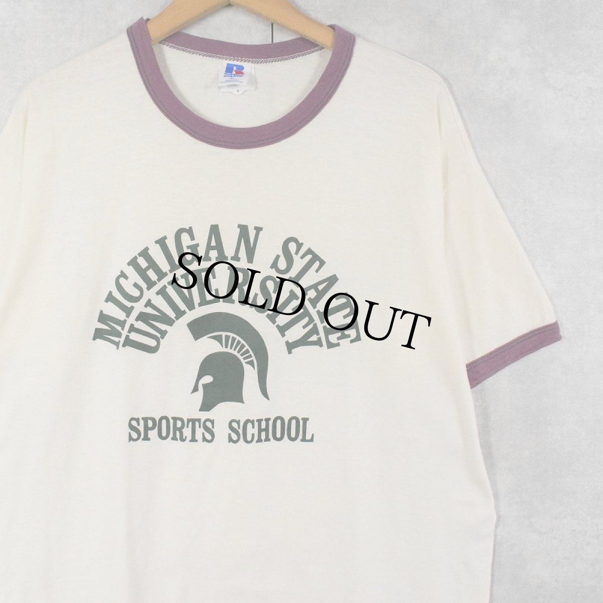 80's RUSSELL ATHLETIC USA製 ”MICHIGAN STATE UNIVERSITY" カレッジプリントリンガーTシャツ XL [149978]