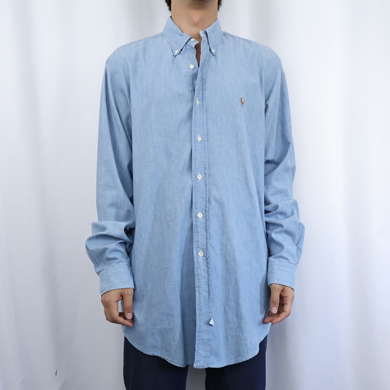 90's Ralph Lauren USA製 シャンブレー ボタンダウンシャツ L [150198]