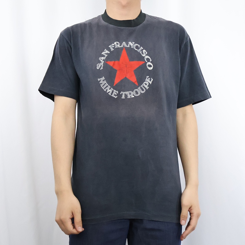 80's USA製 "SAN FRANCISCO MIME TROUPE" 劇団ロゴプリントTシャツ BLACK L [150246]