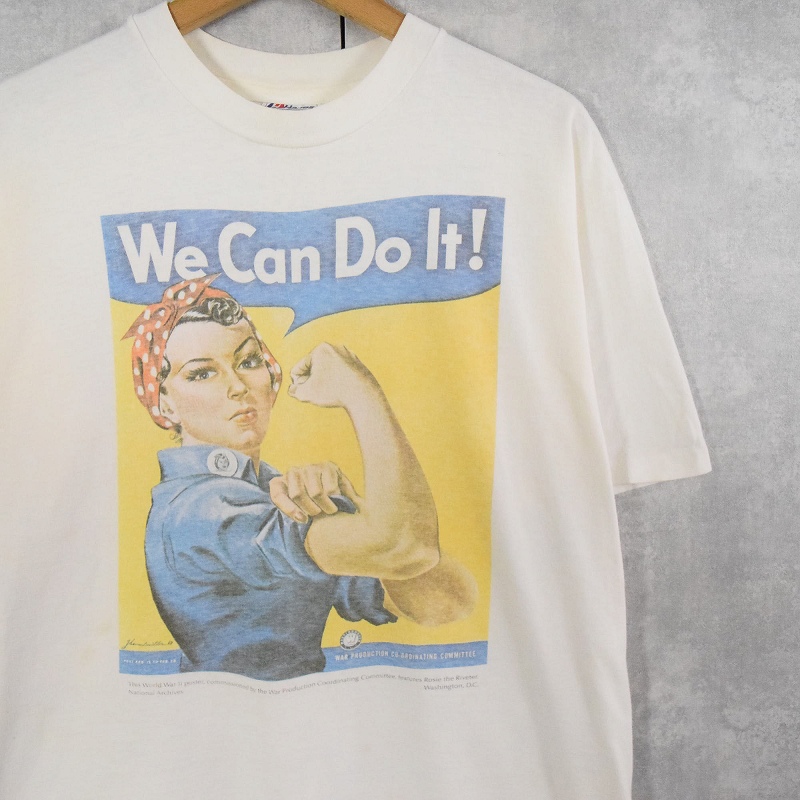90's "We Can Do It!" 第二次世界大戦 ポスタープリントTシャツ L [150251]