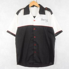 70's King Louie USA製 "METROPOLITAN MTG. & SEC." チェーン刺繍 エポレット付き ボーリングシャツ M [150426]