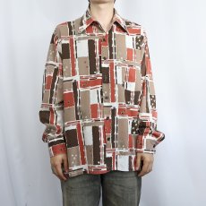 70's JCPenney プリントポリエステル×コットンシャツ L [150486]