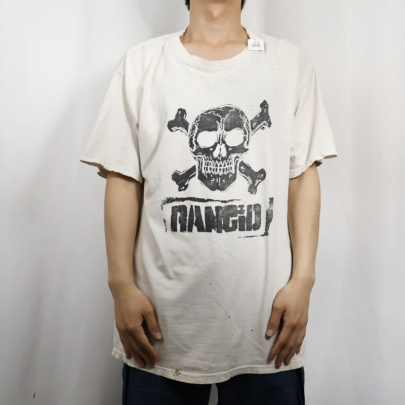90's RANCID パンクロックバンド スカルプリントTシャツ L [150558]
