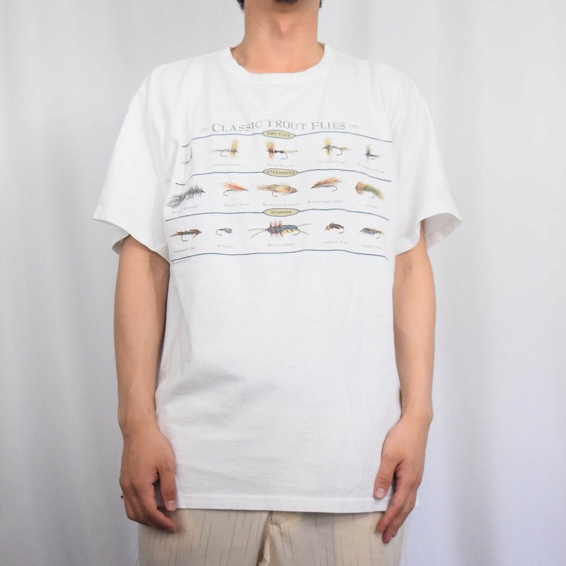 90's HARBORSIDE GRAPHICS USA製 "CLASSIC TROUT FILES" 毛鉤イラストプリントTシャツ L [152819]