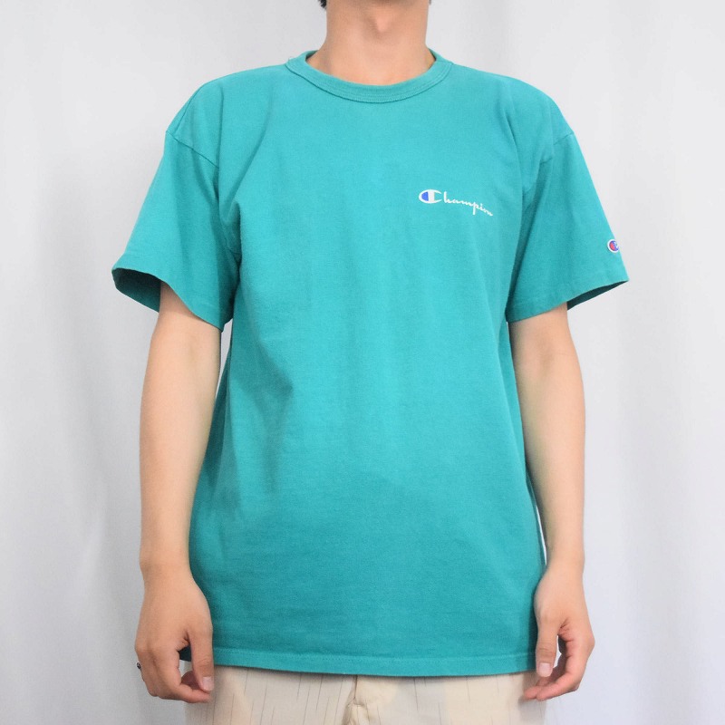 80〜90's Champion USA製 青刺繍タグ 後期 ロゴプリントTシャツ XL [152848]
