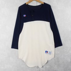 80〜90's RUSSELL ATHLETIC USA製 猫目ボタン ナイロン×コットン フットボールTシャツ XL [152945]