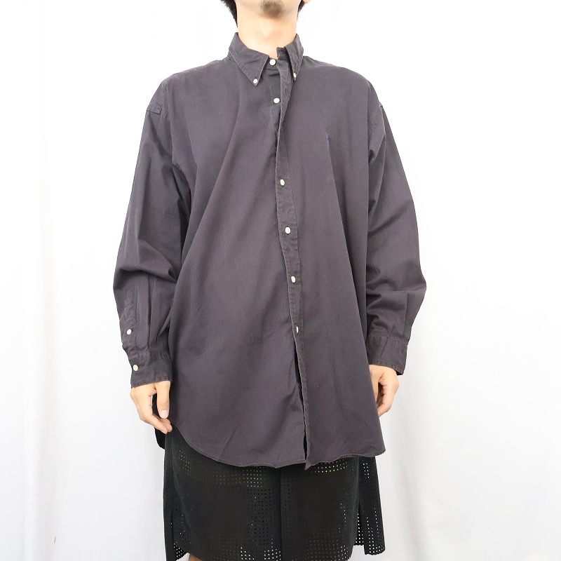 Ralph Lauren ロゴ刺繍 コットンボタンダウンシャツ BLACK XL [157108]