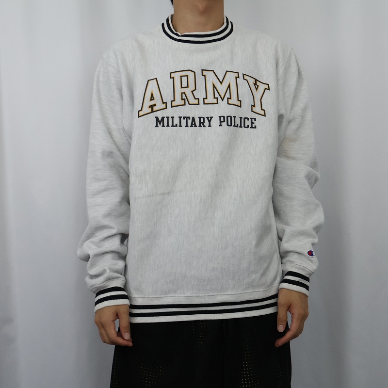 Champion REVERSE WEAVE "ARMY" リブボーダー プリントスウェット S [157244]