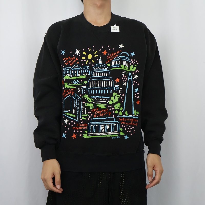 90's Ken Done USA製 前V アートプリントスウェット BLACK [157251]