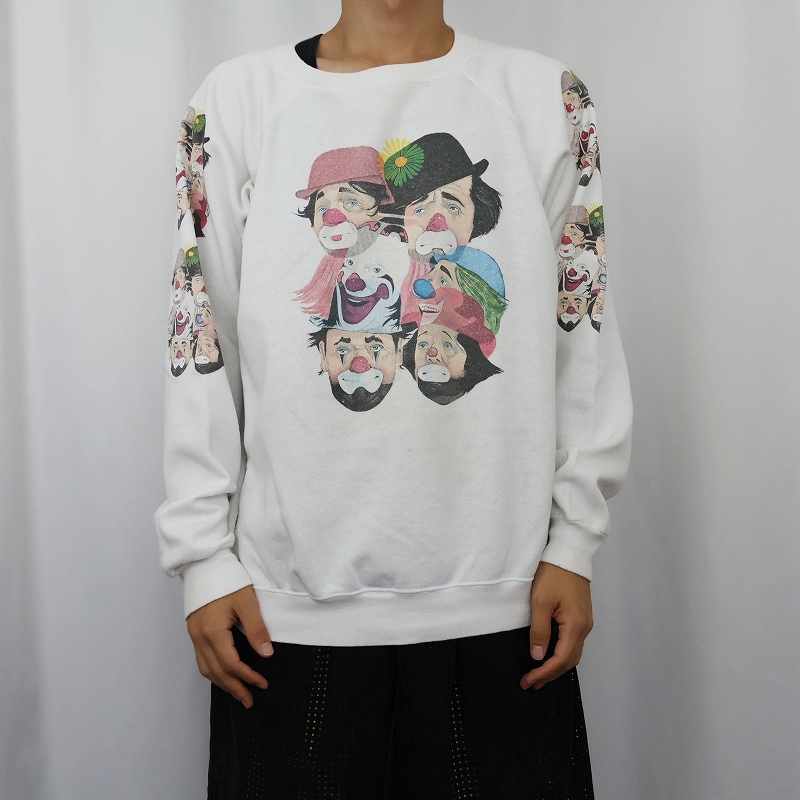 80's Hanes Sport USA製 ピエロ イラストプリントスウェット XL [157299]