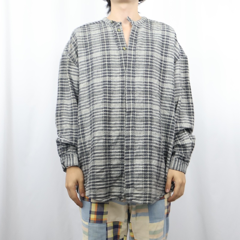 80〜90's Pavo NEPAL製 チェック柄織り バンドカラー コットンシャツ XXL [157423]
