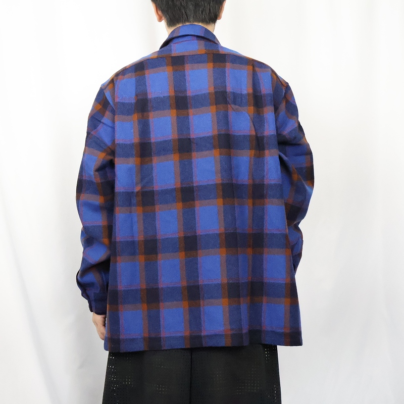 70's PENDLETON USA製 チェック柄 ウールオープンカラーシャツ XL [157923]