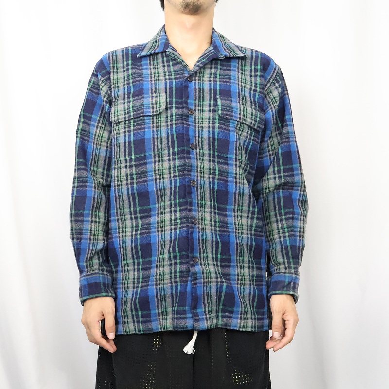 90's POLO Ralph Lauren USA製 チェック柄 ウールオープンカラーシャツ S [157935]