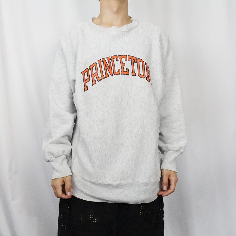 80'〜90s Champion REVERSE WEAVE USA製 トリコタグ "PRINCETON" プリントスウェット L [157980]