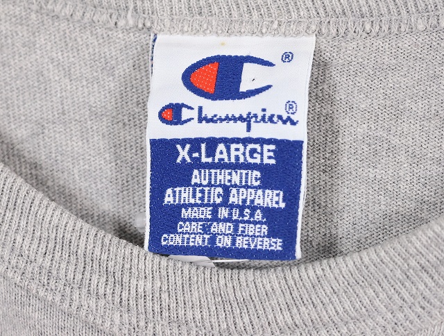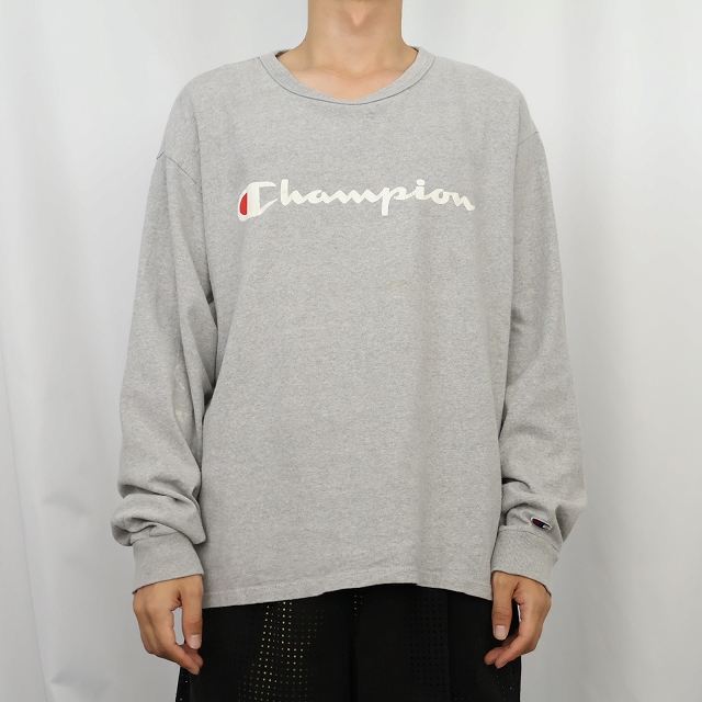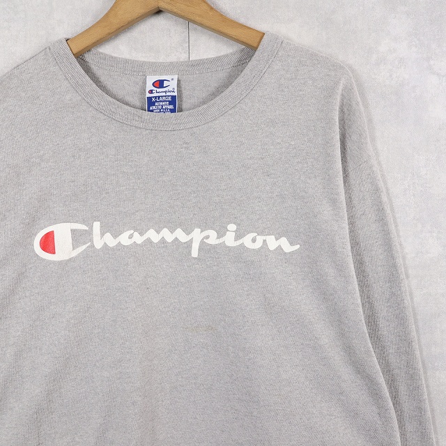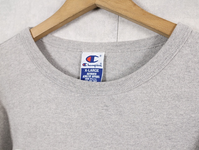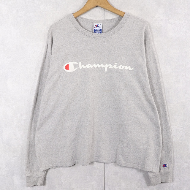 80〜90's Champion 青刺繍タグ 後期 USA製 ロゴプリントロンT XL [158134]