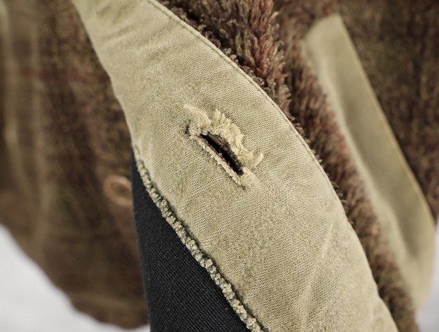 - 着用によるボタンホールの広がりなどがありますが、とても雰囲気の良い一点です。