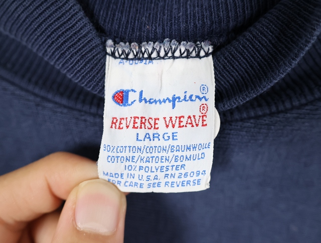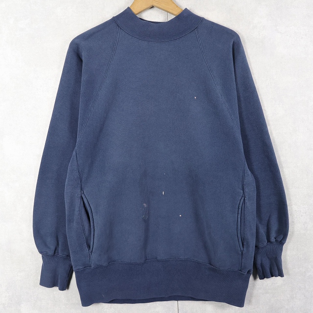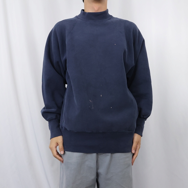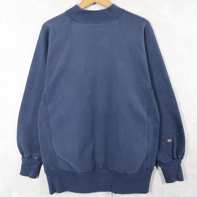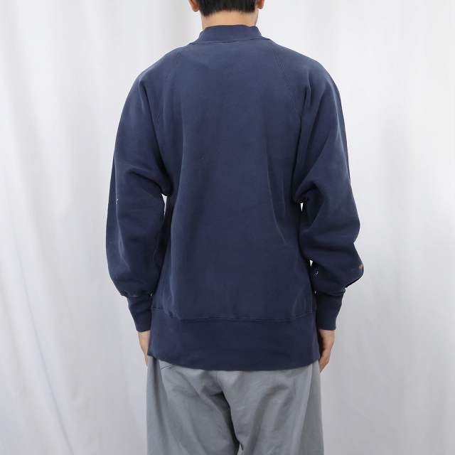 90's Champion REVERSE WEAVE USA製 目無し モックネック ラグランスウェット NAVY L [158284]