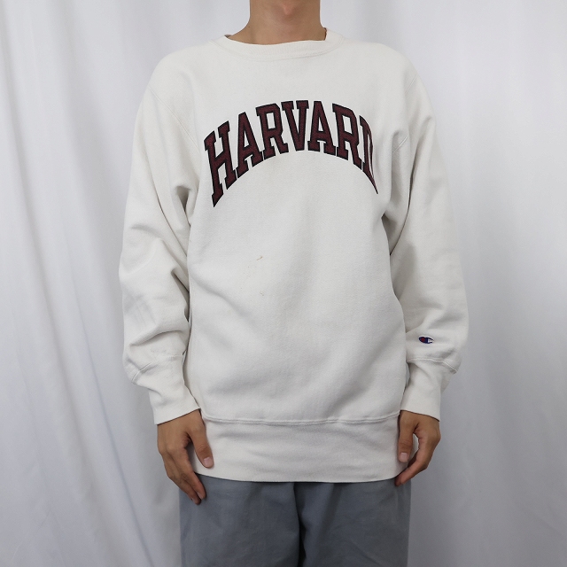 90's Champion REVERSE WEAVE USA製 "HARVARD" 染み込みプリントスウェット L [158289]