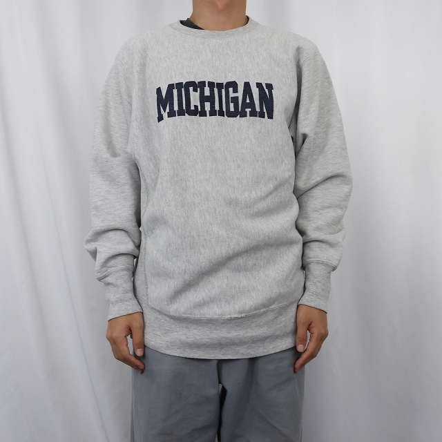 80’s Champion REVERSE WEAVE USA製 トリコタグ "MICHIGAN" プリントスウェット L [158295]