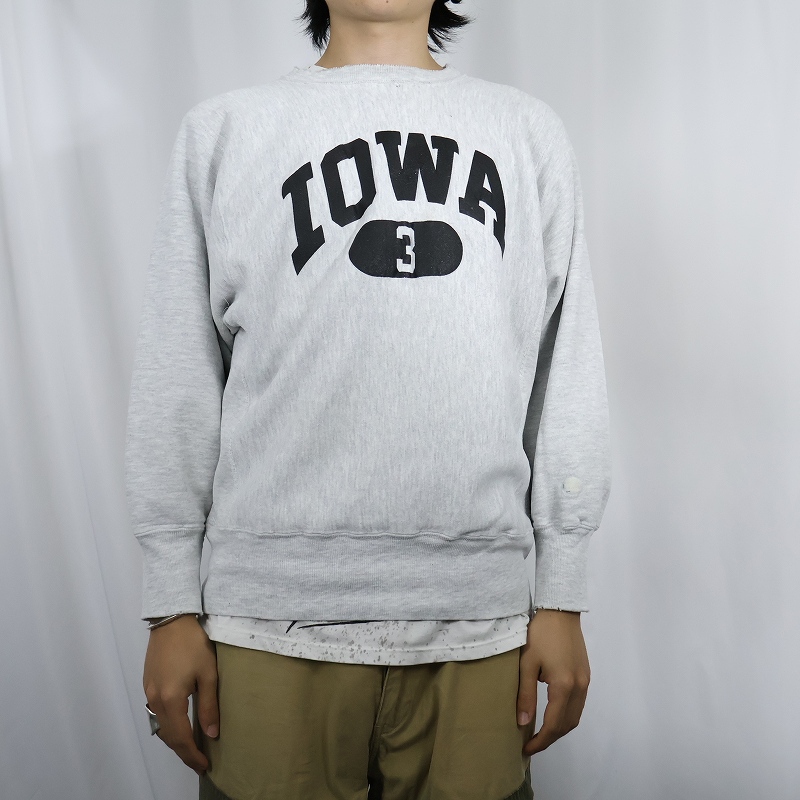 90's Champion REVERSE WEAVE USA製 "IOWA 3" プリントスウェット M [158342]