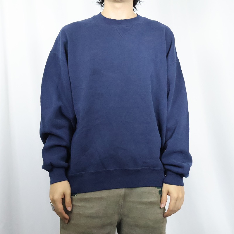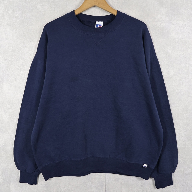90's RUSSELL ATHLETIC USA製 前V 無地スウェット NAVY L [158347]