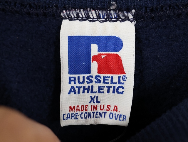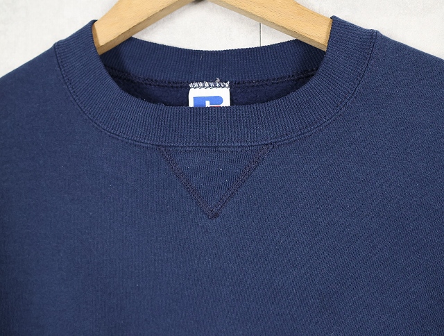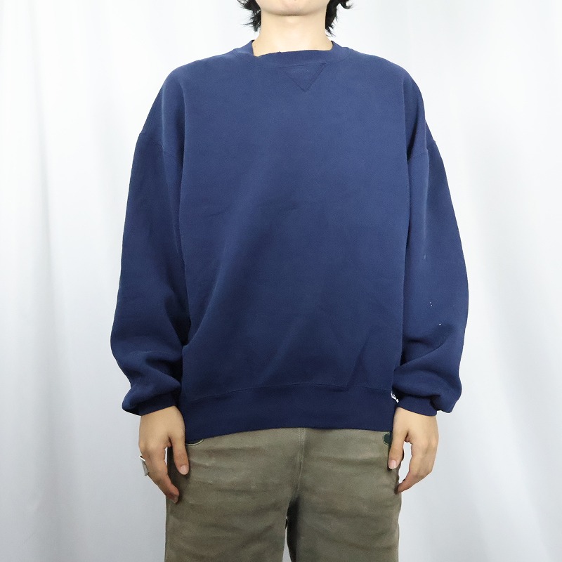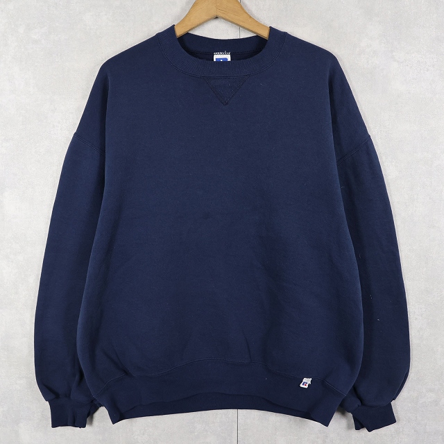 90's RUSSELL ATHLETIC USA製 前V 無地スウェット NAVY XL [158348]