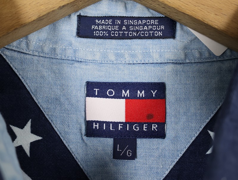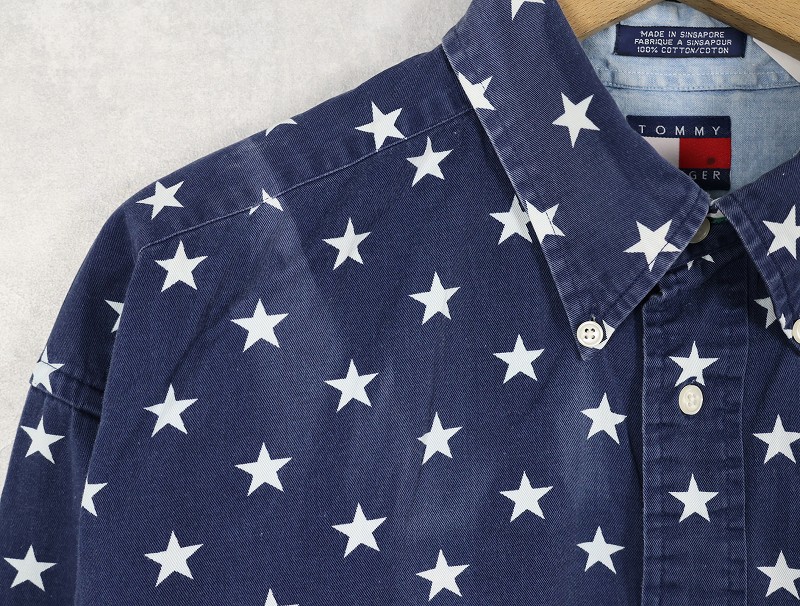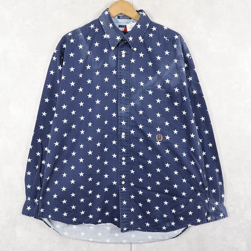 TOMMY HILFIGER 星柄 コットンボタンダウンシャツ L [158352]