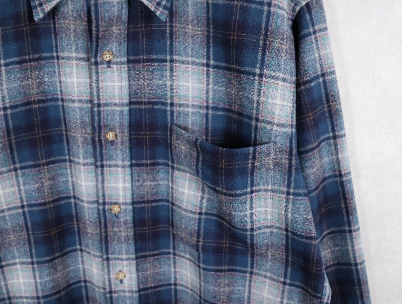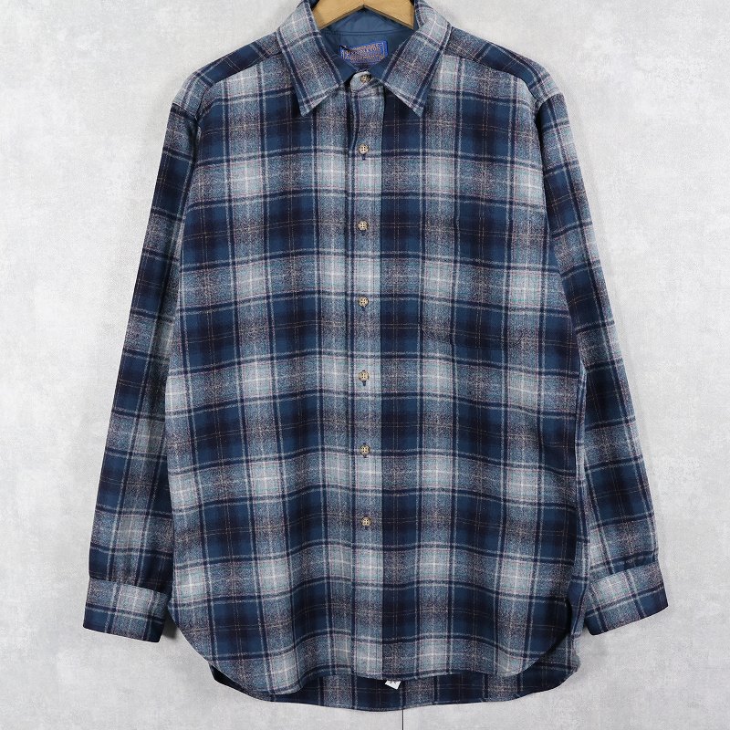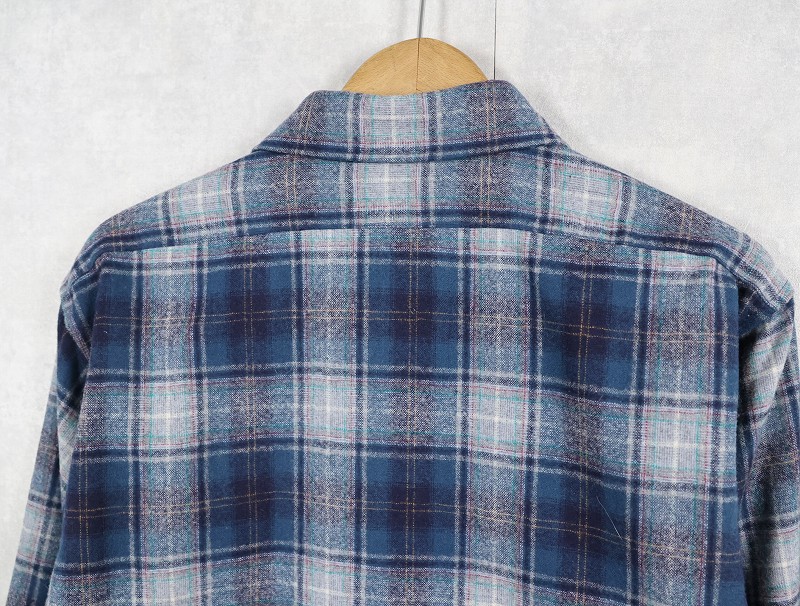 70's PENDLETON USA製 オンブレーチェック柄 ウールシャツ M [158392]