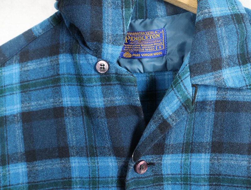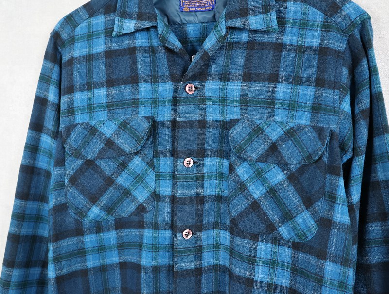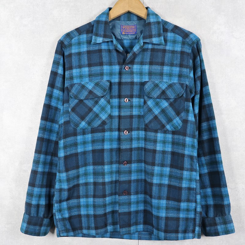 60's PENDLETON チェック柄 ウールオープンカラーシャツ S [158393]