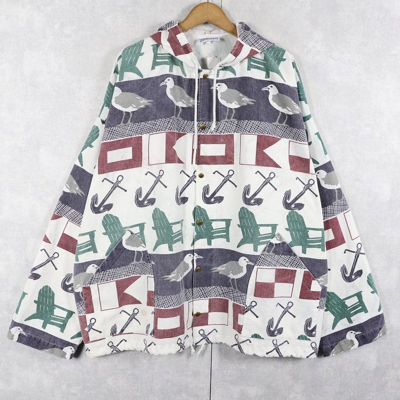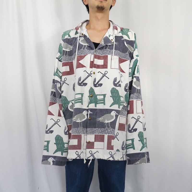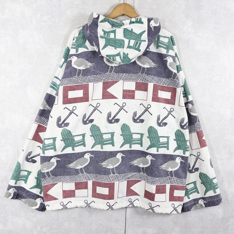 90's MICHIGAN RAG CO. USA製 総柄 コットンパーカー XL [158440]