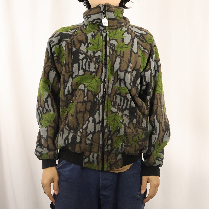 80's SAFTBAK USA製 トレバークカモ×リアルツリーカモ柄 フリースジャケット L [158499]