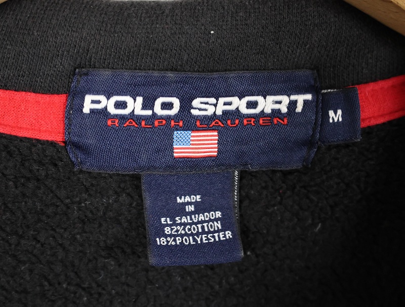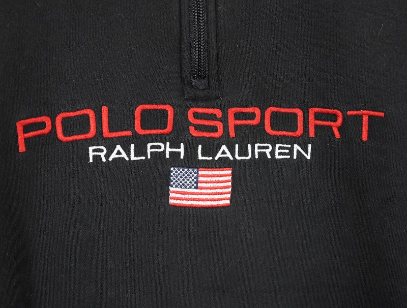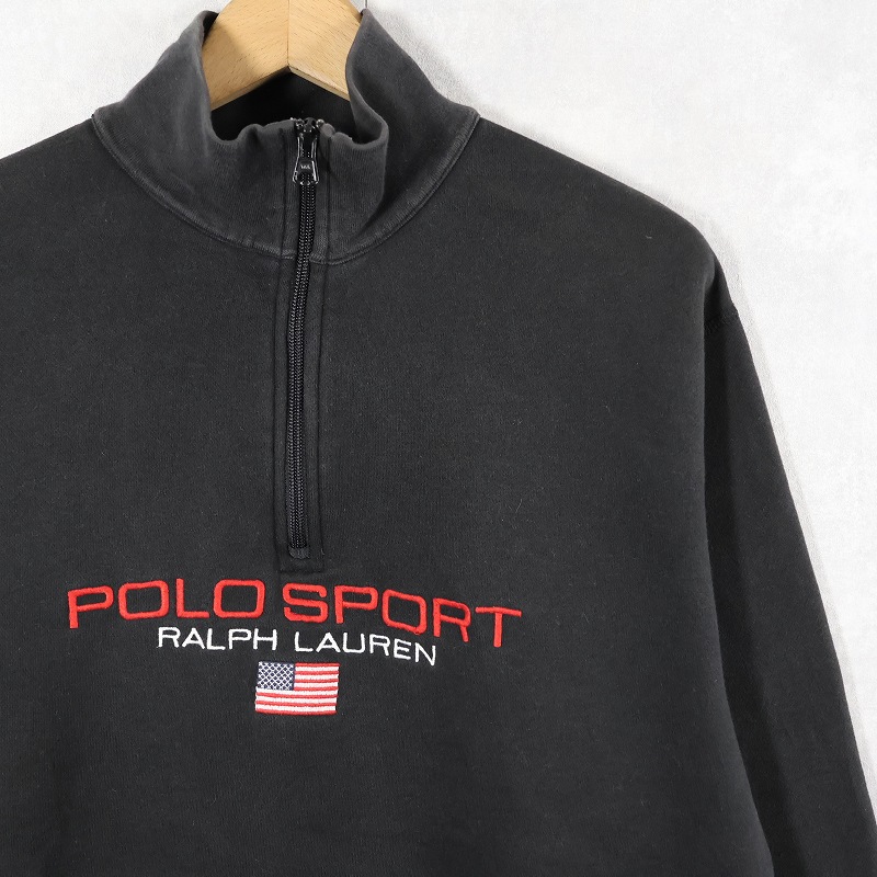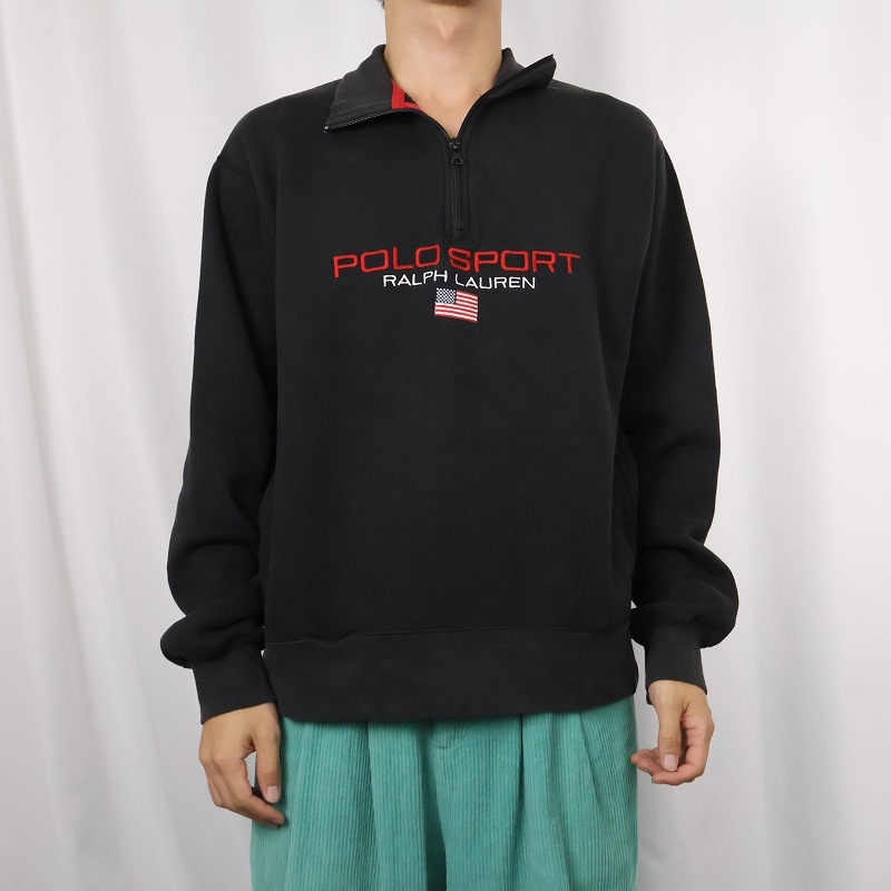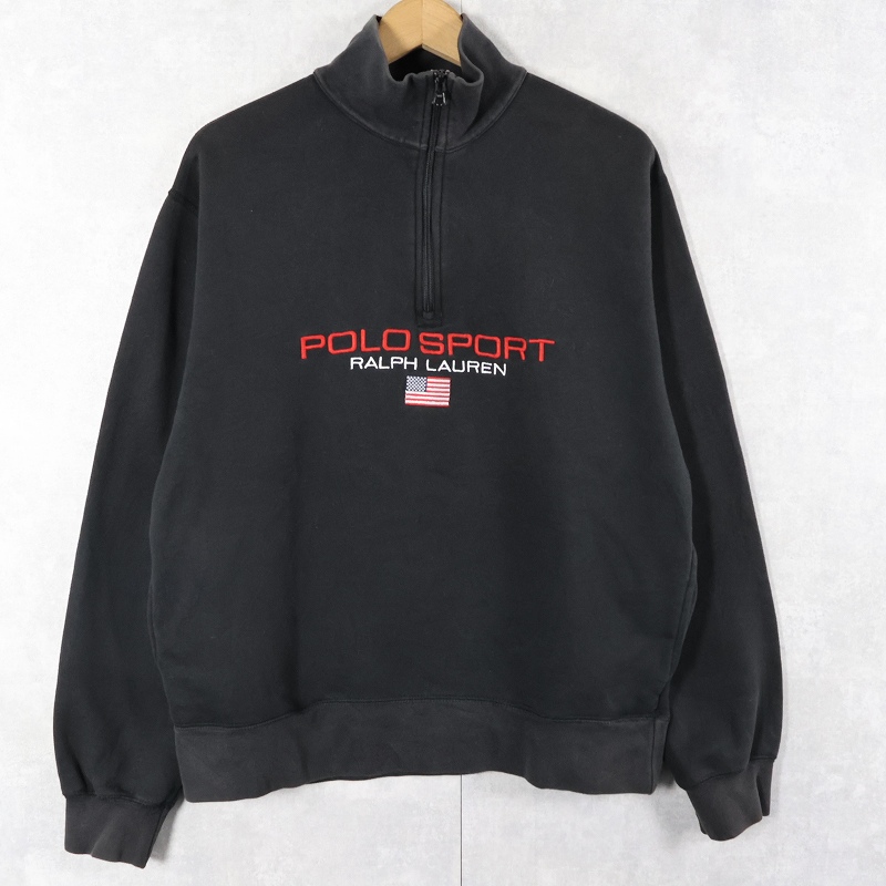 90's Ralpha Lauren POLO SPORT ロゴ刺繍 ハーフジップ ハイネックスウェット BLACK M [158532]