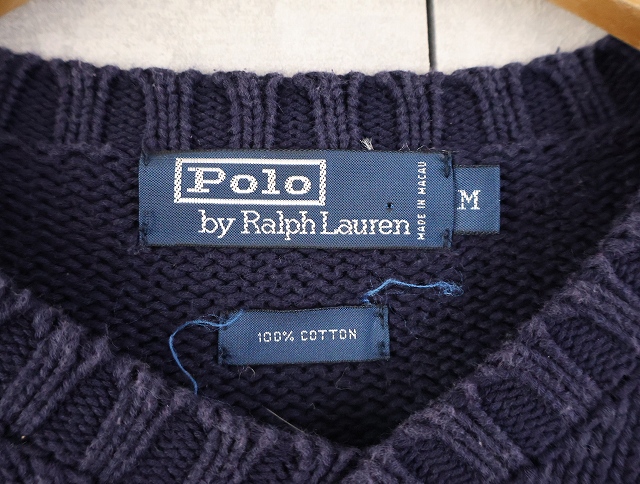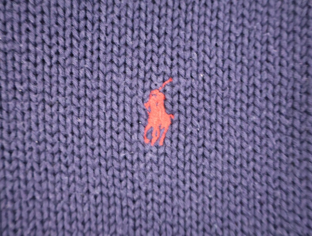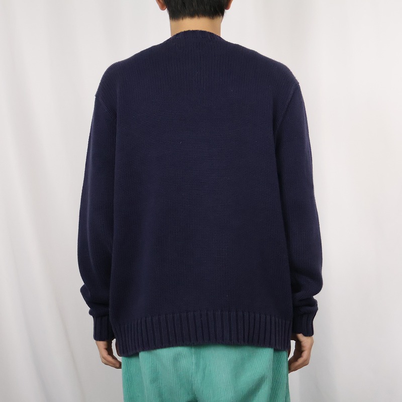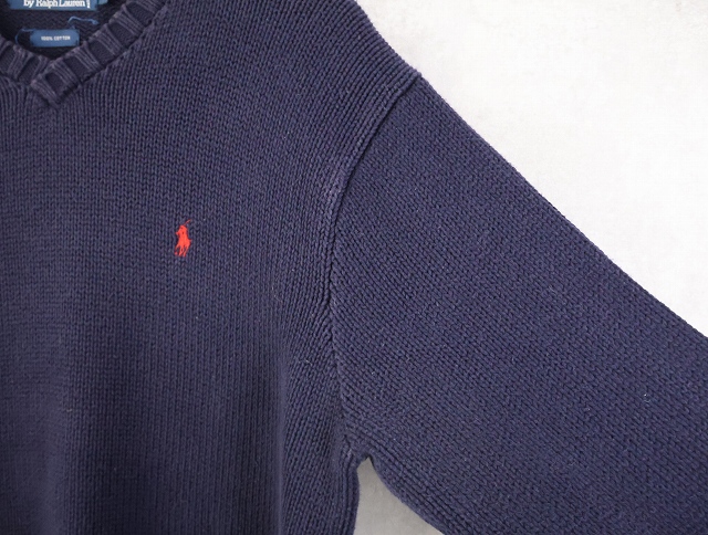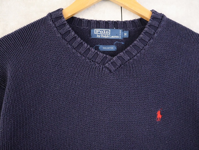 POLO Ralph Lauren ロゴ刺繍 Vネック コットンニットセーター NAVY M [158541]