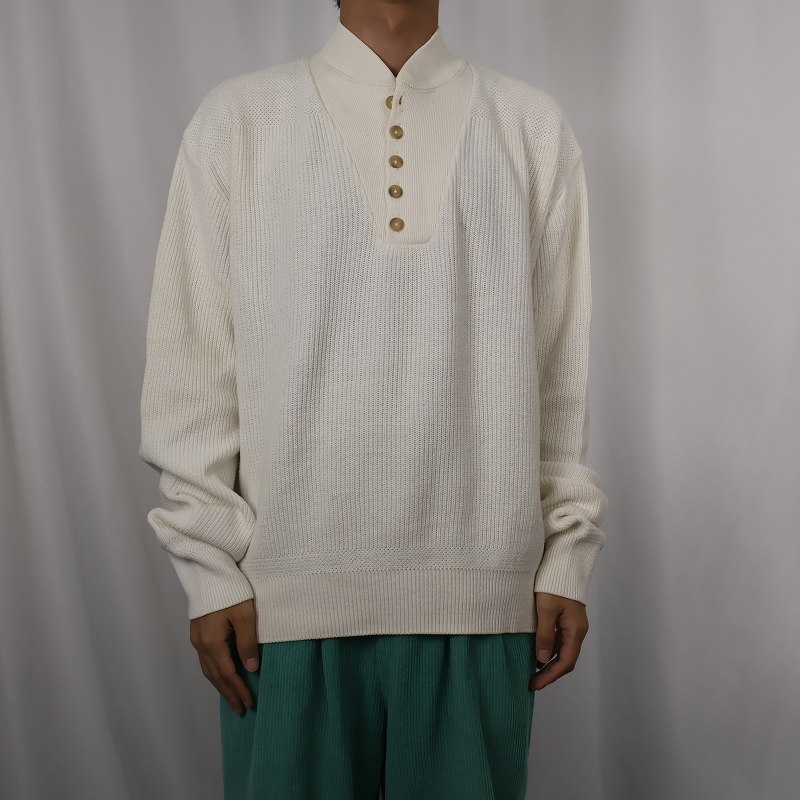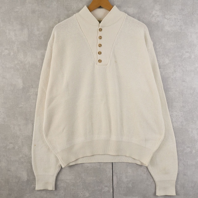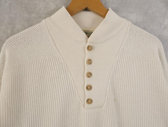 80's L.L.Bean USA製 ヘンリーネック コットンニットセーター L [158545]