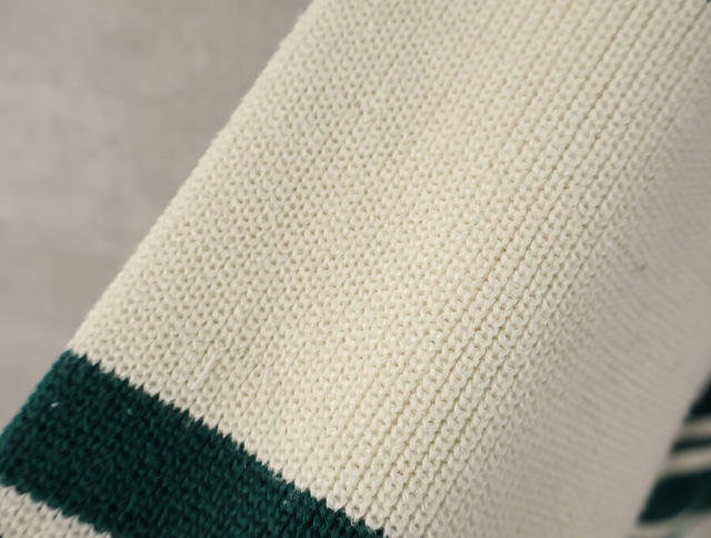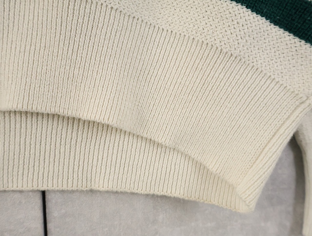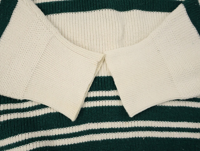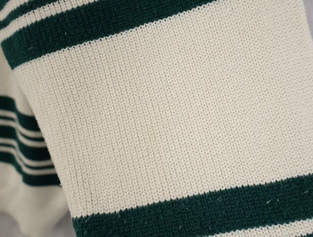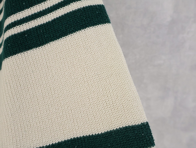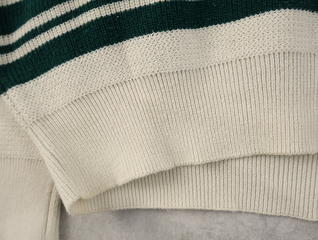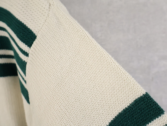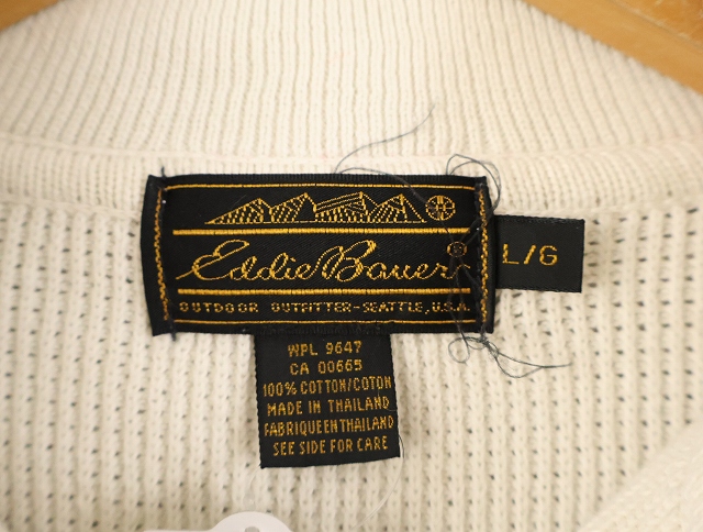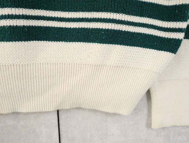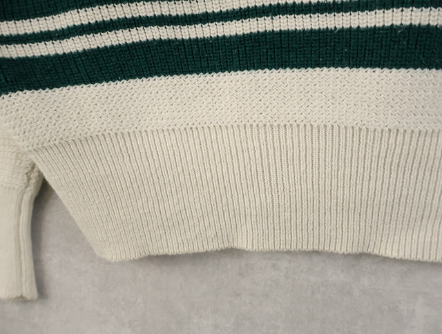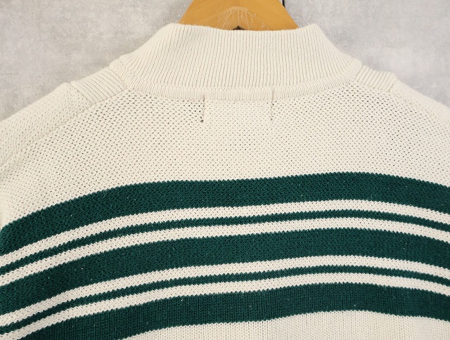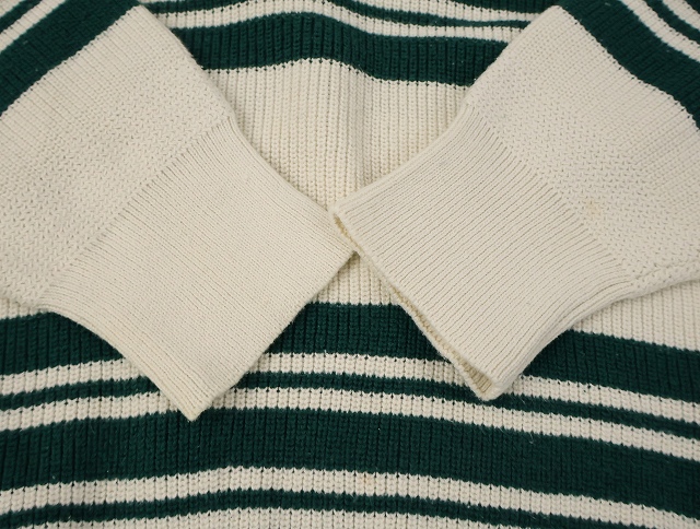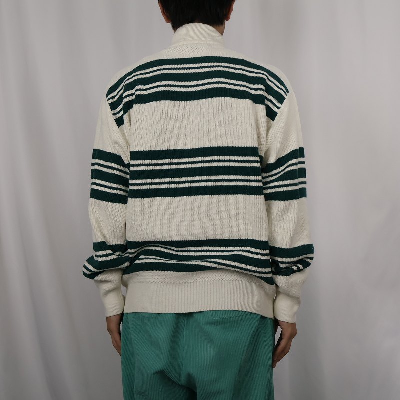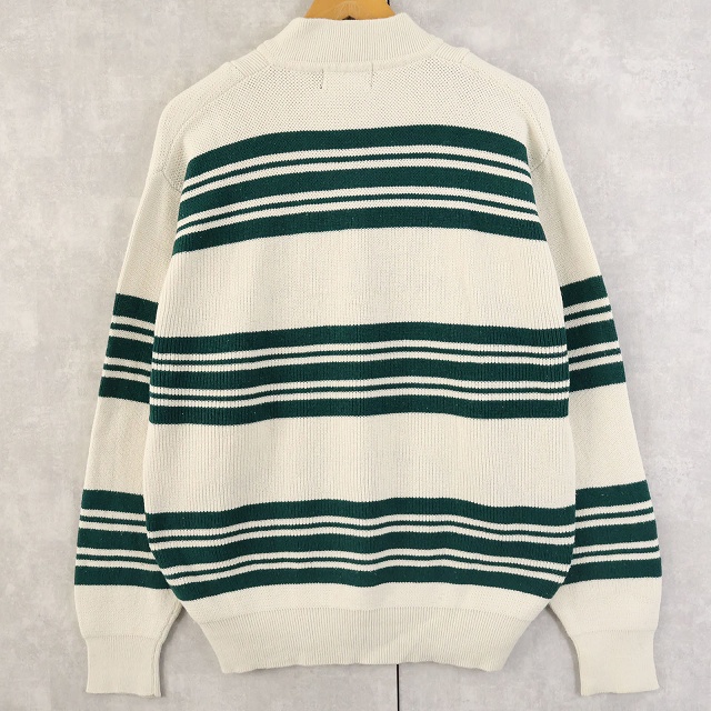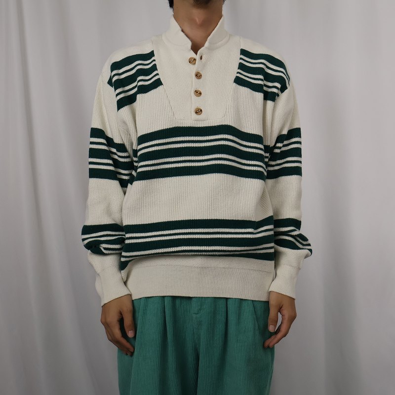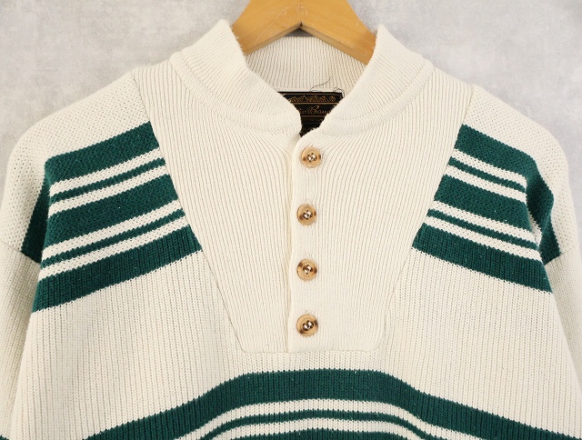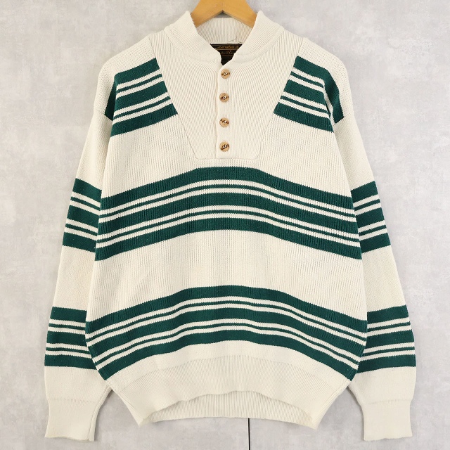 80's Eddie Bauer ボーダー柄 ヘンリーネック コットンニットセーター L [158548]