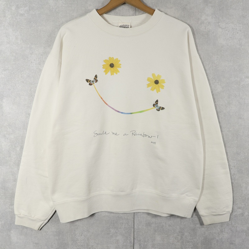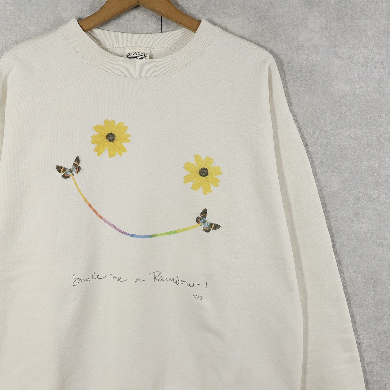 90's MAZE USA製 "Smali me a Rainbow!" スマイルプリントスウェット L [158552]