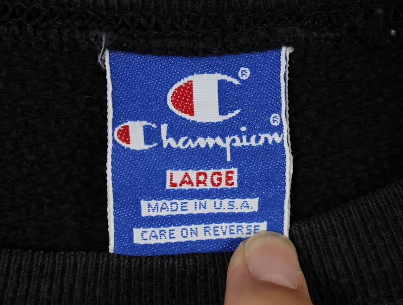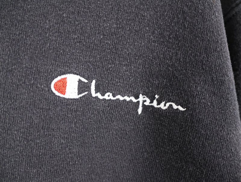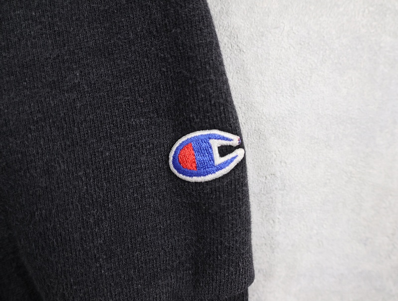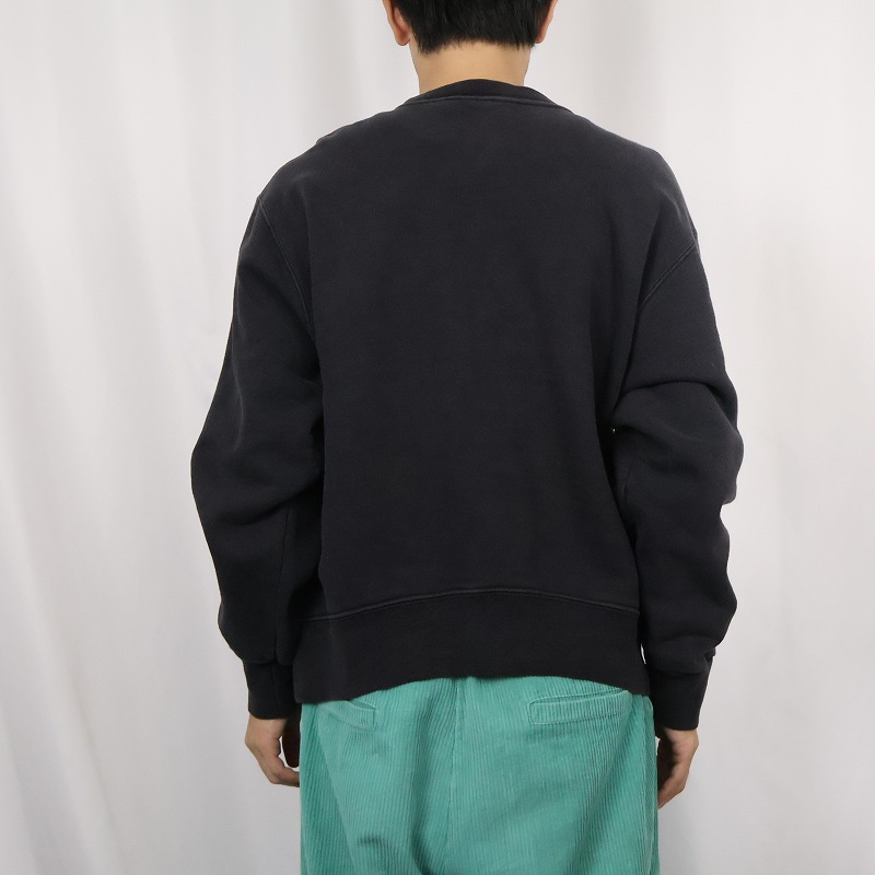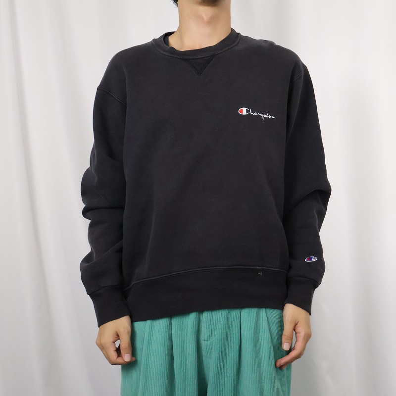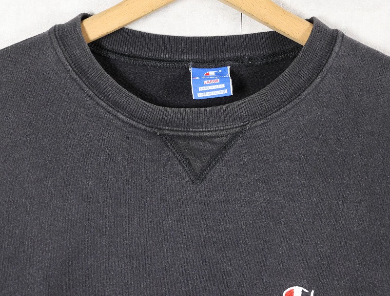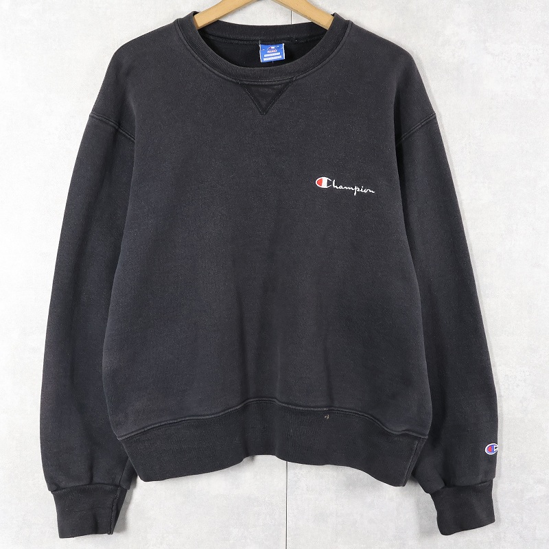 80〜90's Champion USA製 青刺繍タグ中期 ロゴ刺繍 前Vスウェット BLACK L [158554]