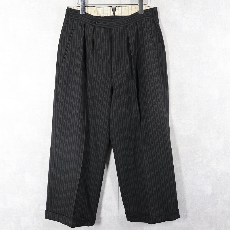 50〜60's JAPAN製 ストライプ柄 2タック ウールスラックス W31 [158556]