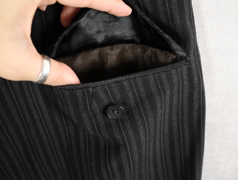 - 裾上げ跡や、ボタンの付け替え、わずかなほつれがありますが、大きな汚れ、ダメージは無く、良い状態かと思います。