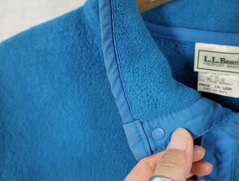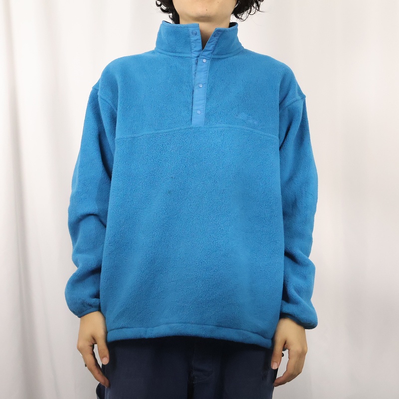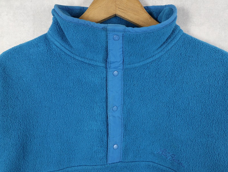 80's L.L.Bean USA製 筆記体ロゴ刺繍 ハーフスナップフリースジャケット L [158595]