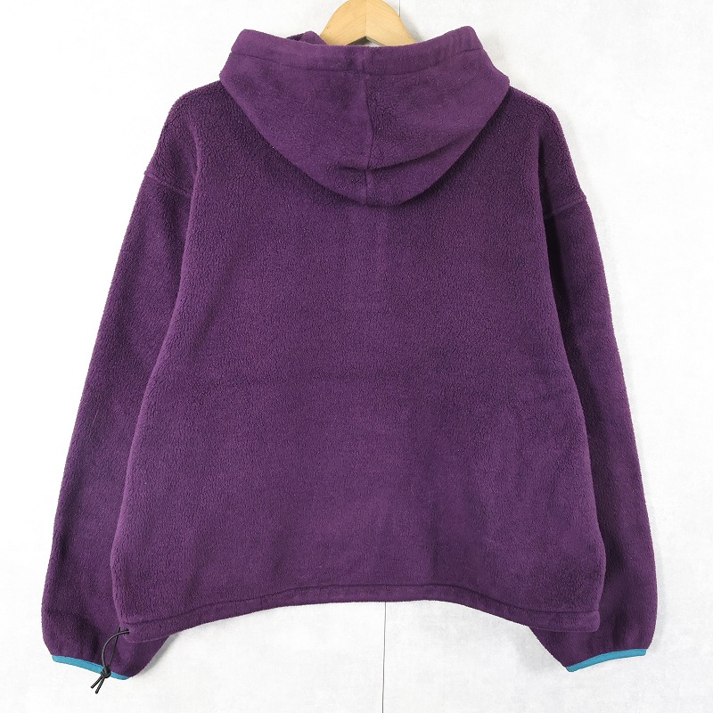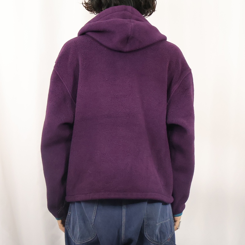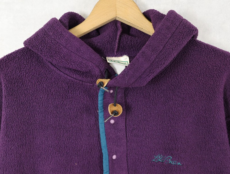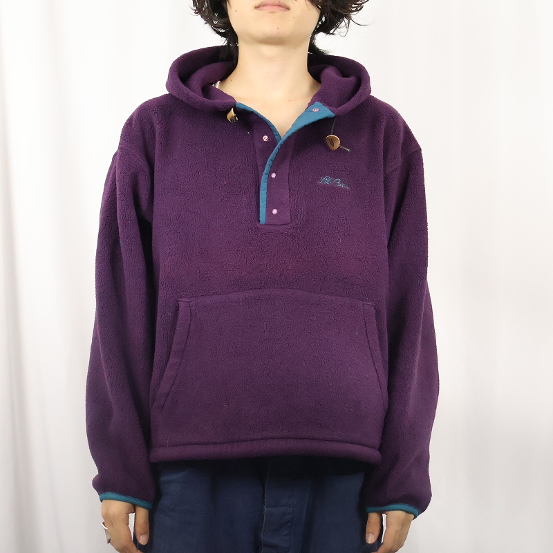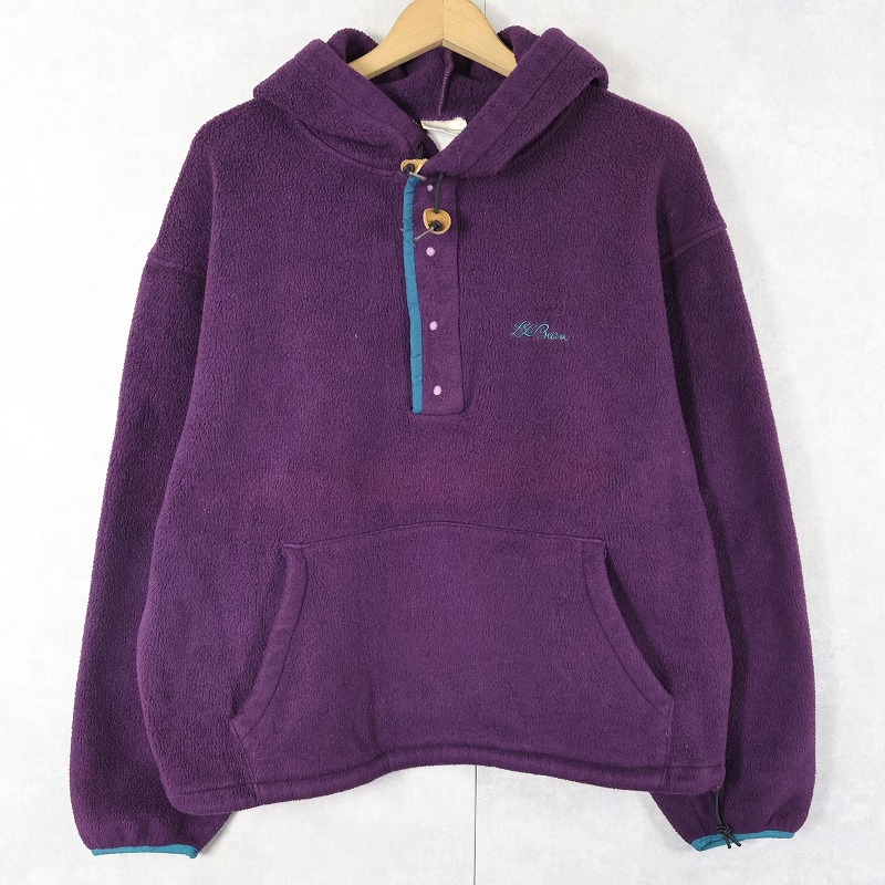 80's L.L.Bean USA製 筆記体ロゴ刺繍 ハーフスナップフリースフーディー [158596]