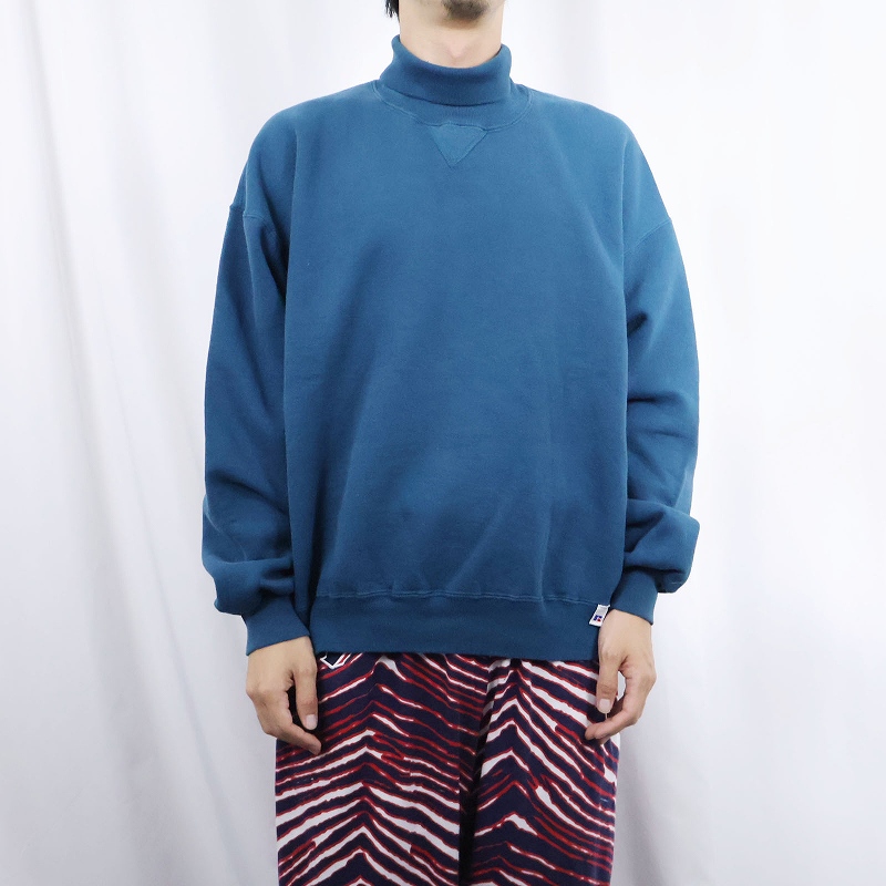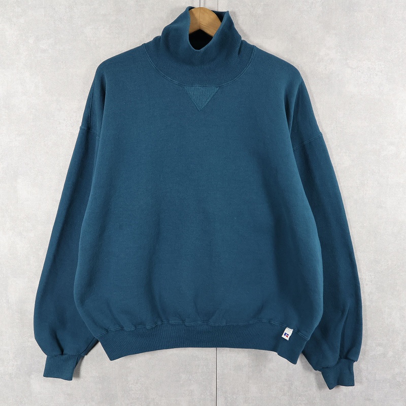90's RUSSELL ATHLETIC USA製 前V タートルネック 無地スウェット XL [158609]