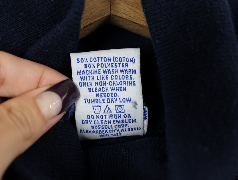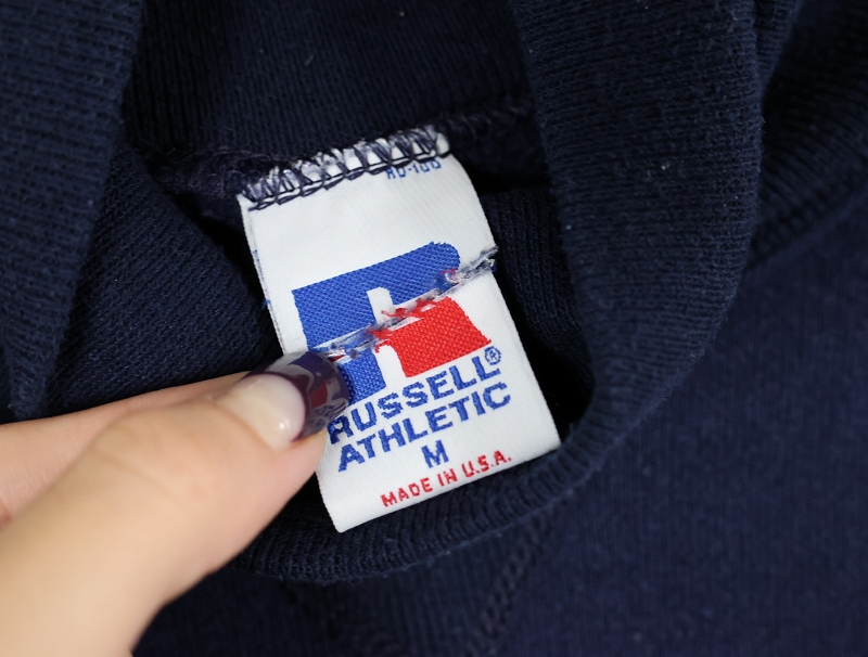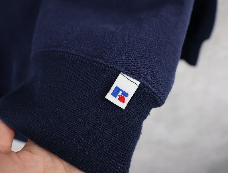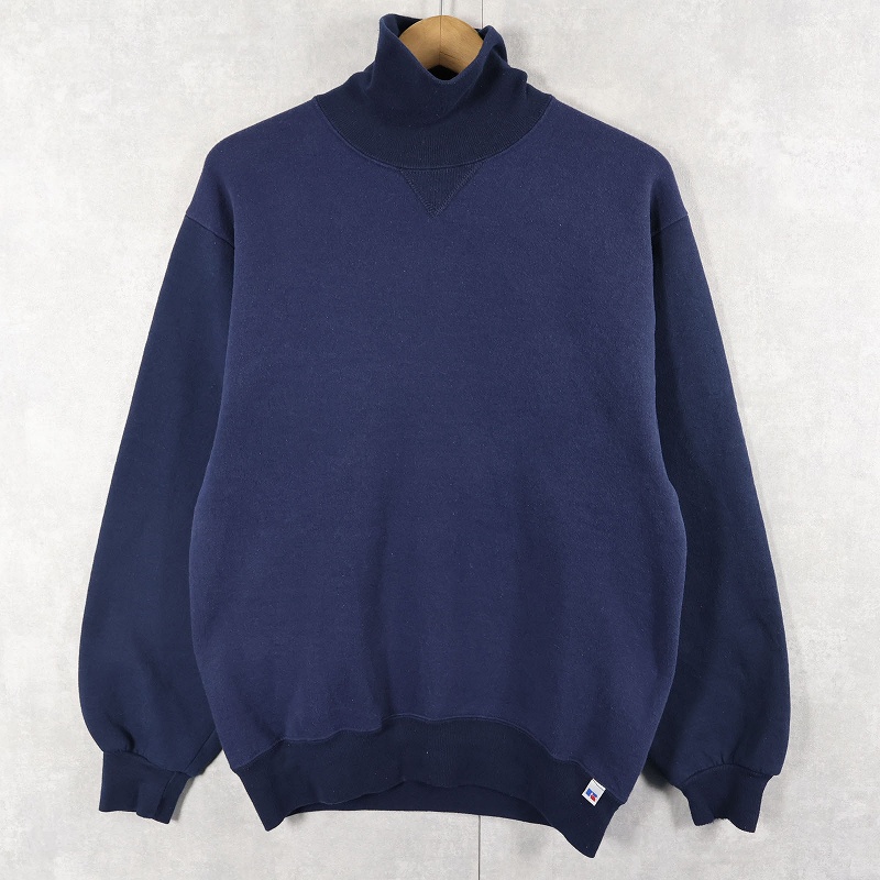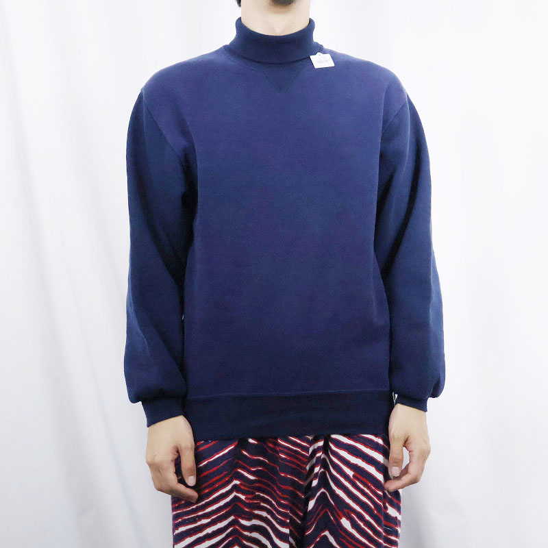 90's RUSSELL ATHLETIC USA製 前V タートルネック 2トーン スウェット NAVY M [158611]