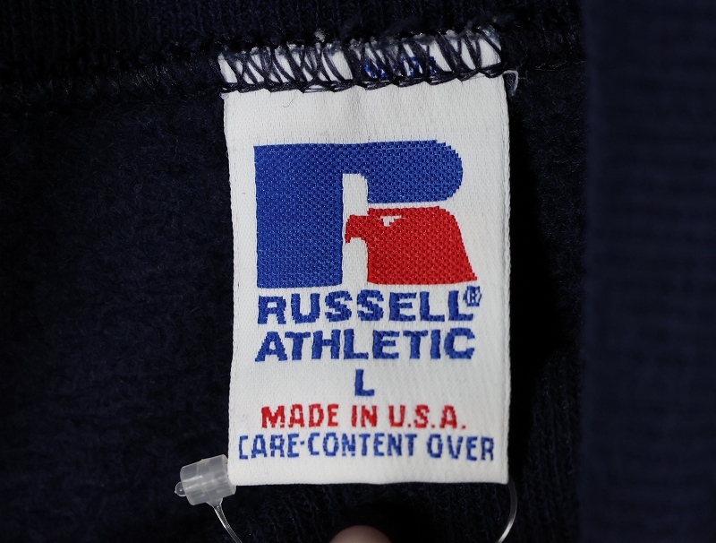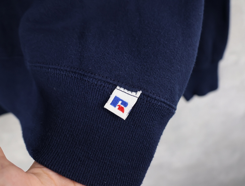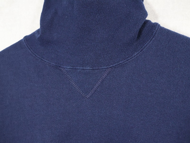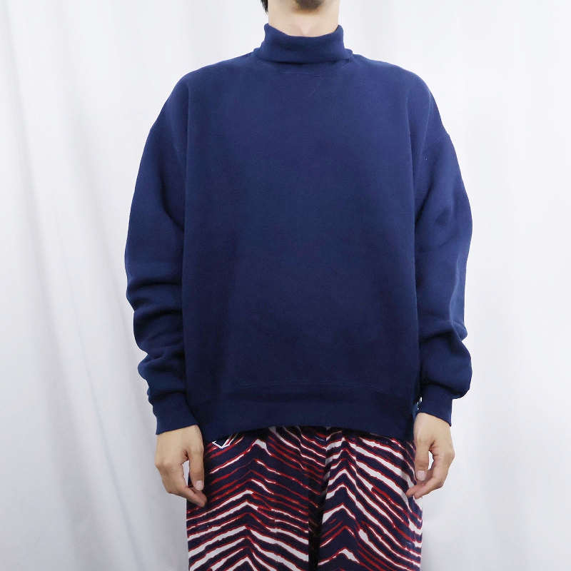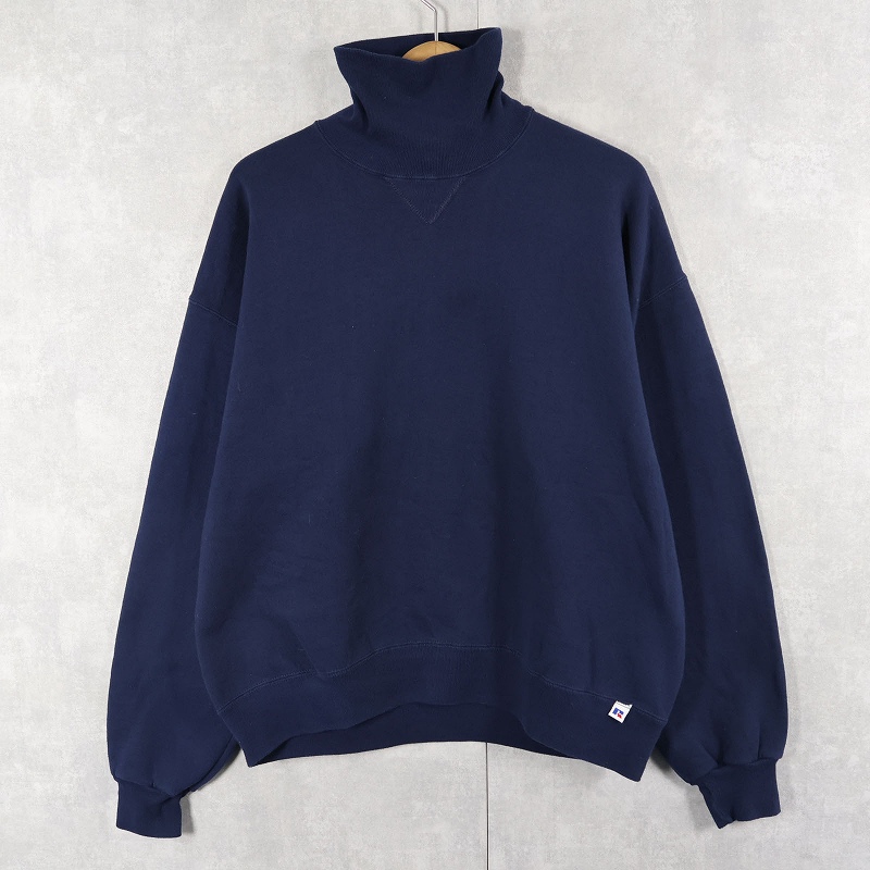 90's RUSSELL ATHLETIC USA製 前V タートルネック 無地スウェット NAVY L [158612]