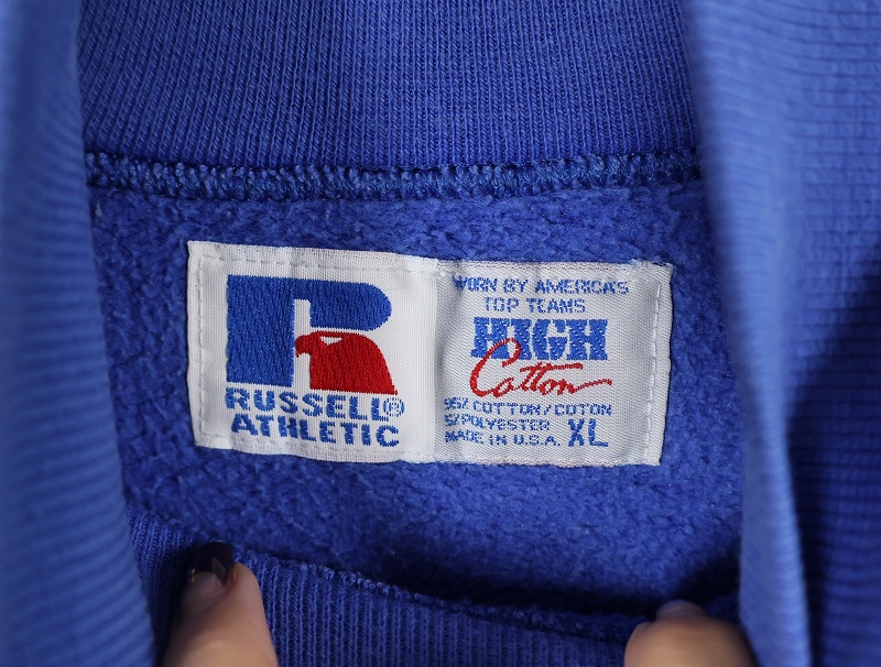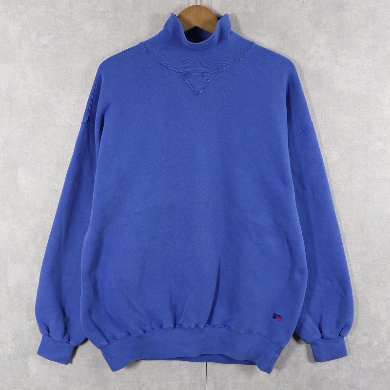 90's RUSSELL ATHLETIC USA製 前V タートルネック 無地スウェット XL [158613]