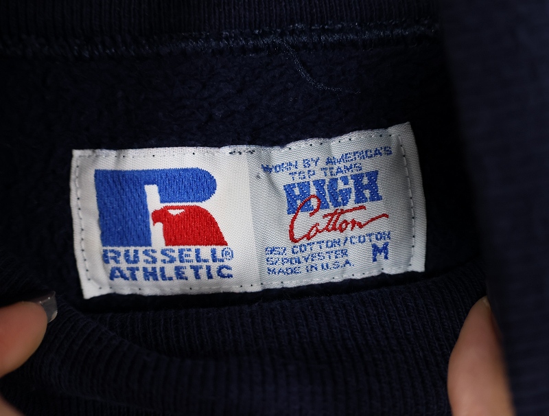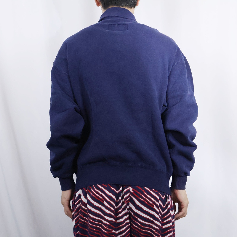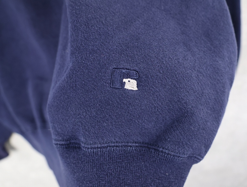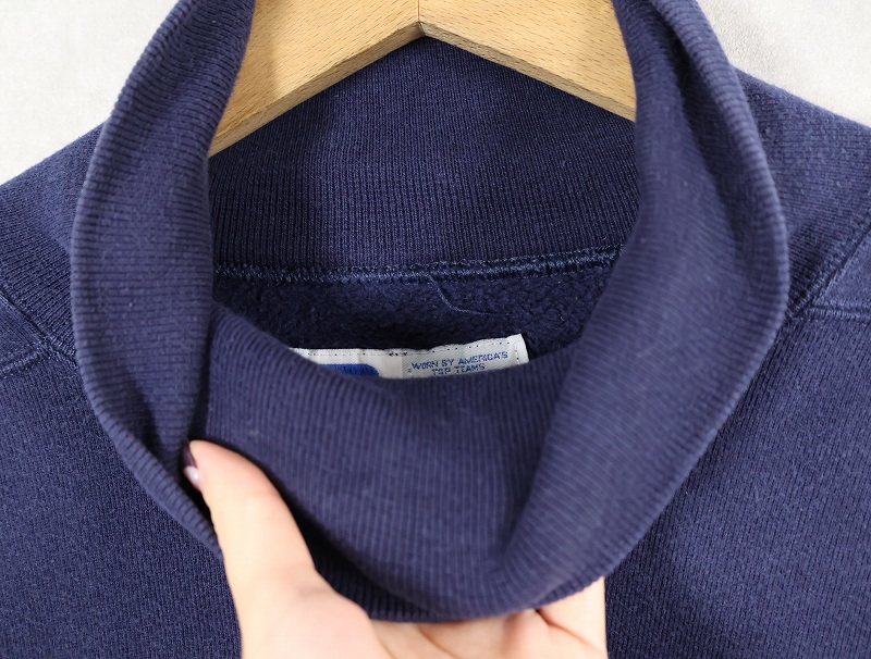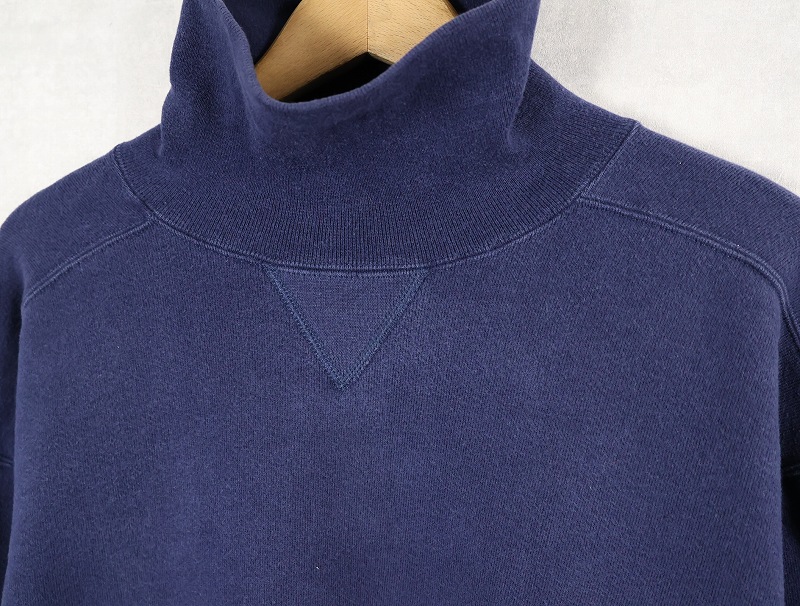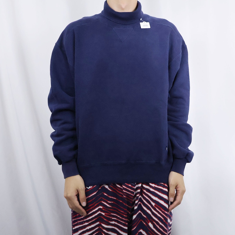 90's RUSSELL ATHLETIC USA製 前V タートルネック 無地スウェット NAVY M [158614]