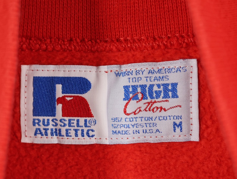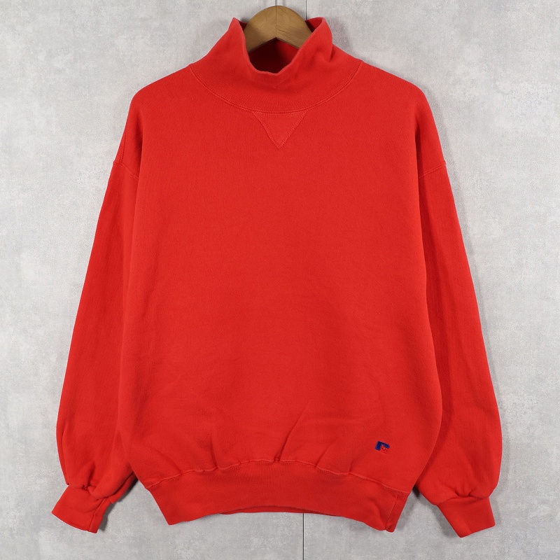 90's RUSSELL ATHLETIC USA製 前V タートルネック 無地スウェット M [158615]