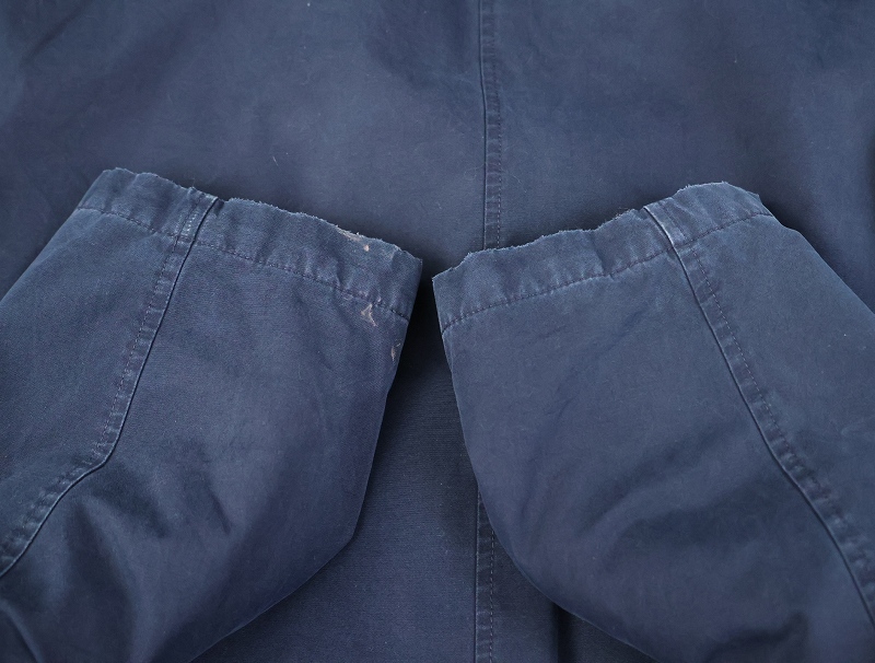 - 色褪せ、薄汚れ、袖口の擦れや小穴がありますが、とても雰囲気の良い一点です。