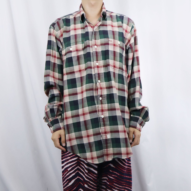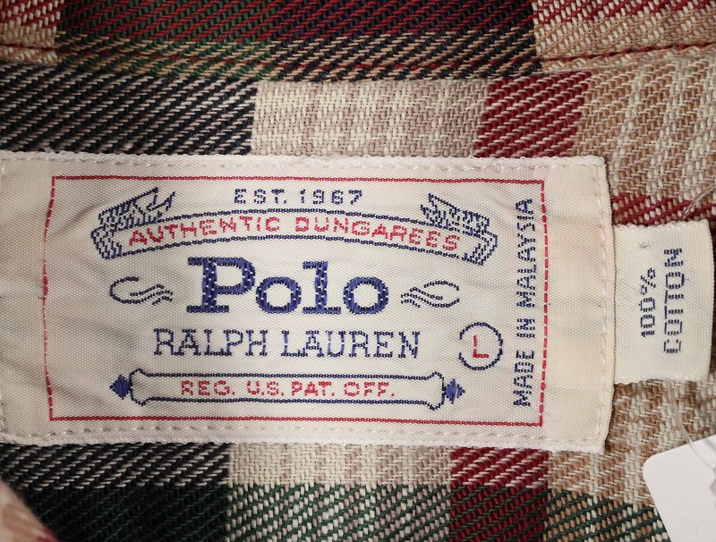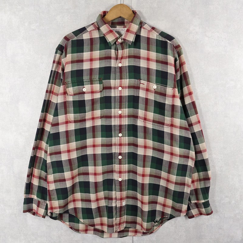 80〜90's POLO Ralph Lauren "AUTHENTIC DUNGAREES" チェック柄 コットンワークシャツ L [158641]
