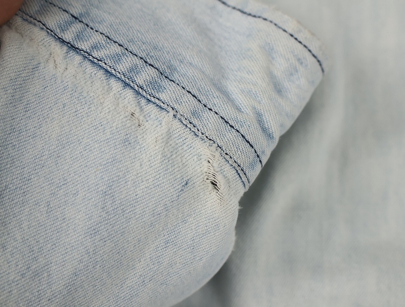 - 色落ち、破れや小穴等のダメージ、黄ばみやシミがありますが、とても雰囲気の良い一点です。